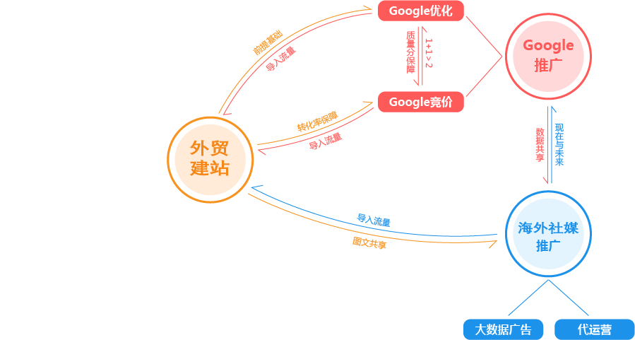 咸阳外贸推广公司为您提供全面的“整合”方案,为您的企业提供全生命周期的精细化服务和咨询。为此,我们搭建了从广告投放到SEO优化,从内容运营到网站开发,从品牌策划到电商运营的近100人的团队,组成了一家集全球渠道资源、人才资源、技术资源为一体的数字营销机构,为您一站式解决出海难题,实现品牌全球推广!